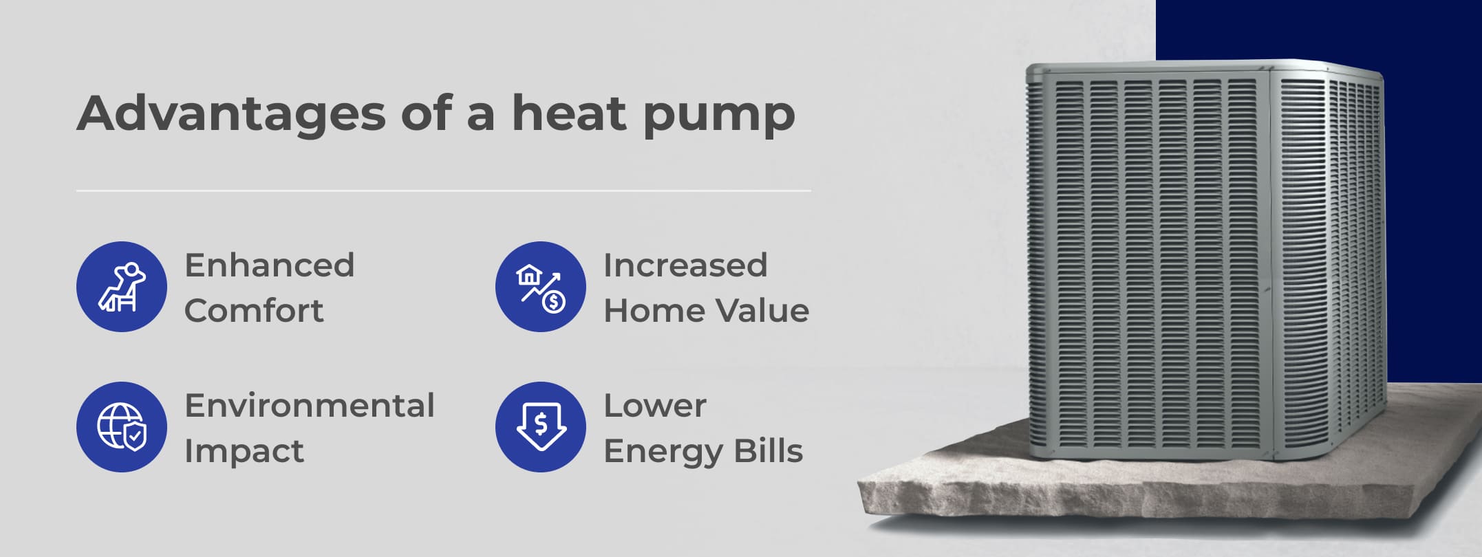 - Lower Energy Bills. Switching to an energy-efficient heat pump will allow you to reduce your monthly heating and cooling costs.